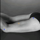 down on the table and the knees flexed (to less than 90 degrees)