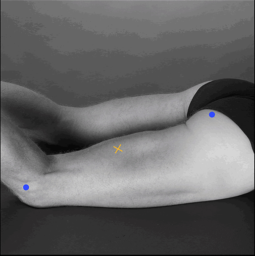 between the ischial tuberosity and the lateral epicondyle of the