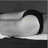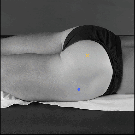 between the sacral vertebrae and the greater trochanter. This position