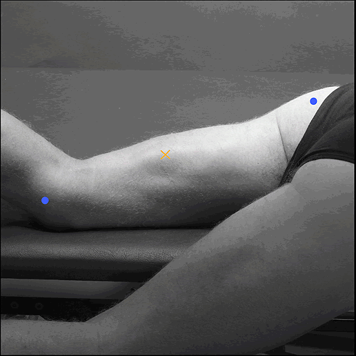 between the ischial tuberosity and the medial epycondyle of the
