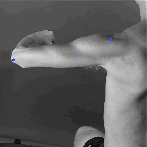 the elbow while applying pressure to the forearm in the direction